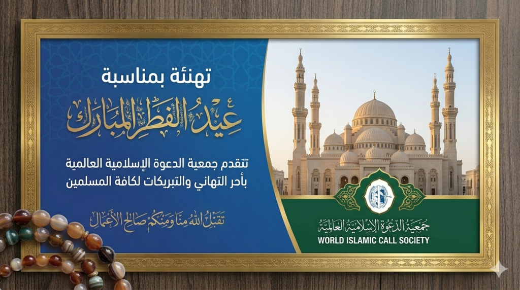 تتقدم جمعية الدعوة الإسلامية العالمية بأسمى آيات التهاني وأطيب التبريكات إلى الأمة الإسلامية جمعاء، بمناسبة حلول عيد الفطر المبارك، سائلين المولى عز وجل أن يتقبل منا ومنكم صالح الأعمال، وأن يعيده علينا وعليكم بالخير واليُمن والبركات.